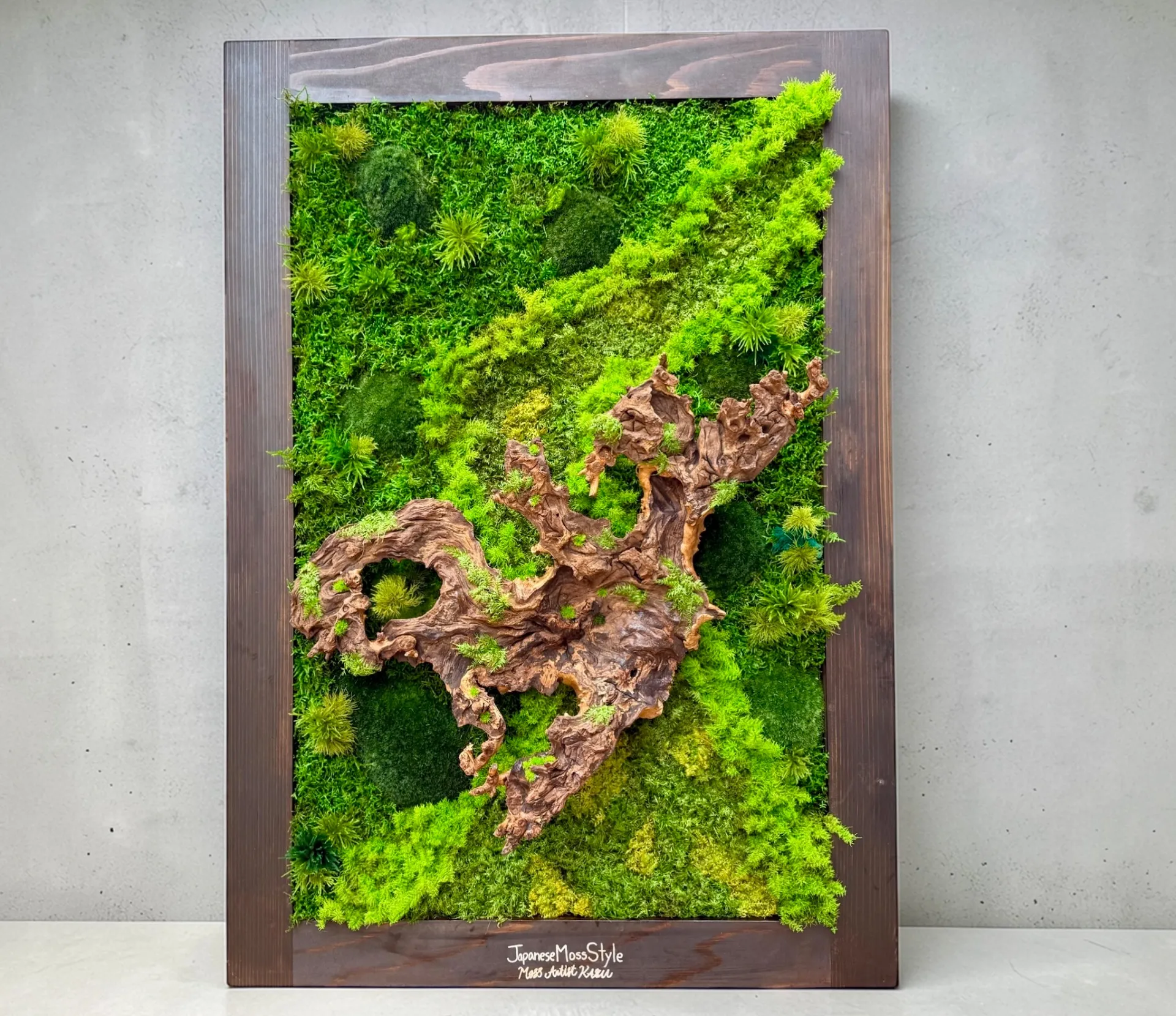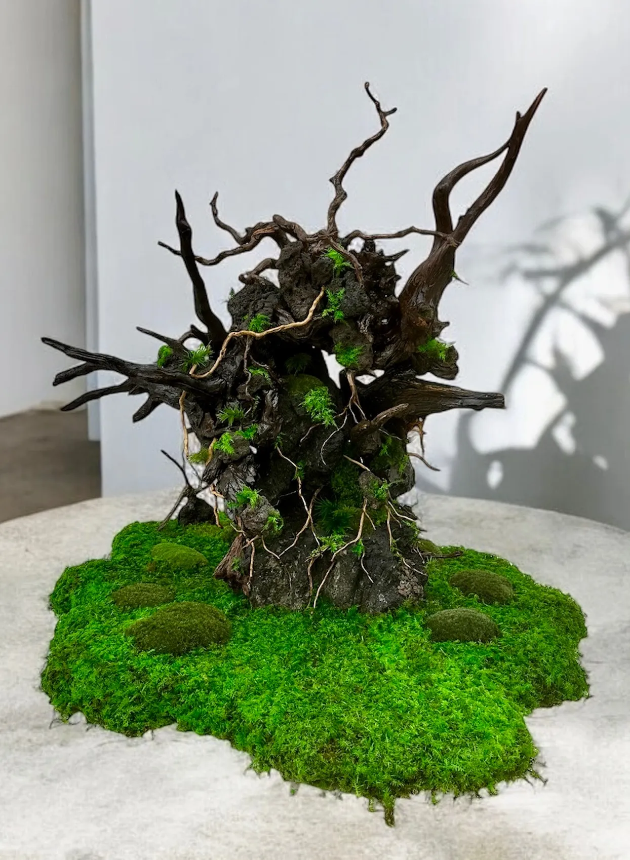 特殊加工を施した苔アートは水やりや日当たりを気にせず、永きにわたり美しい緑をお楽しみいただけます。多忙な日々を送る現代で、手間をかけずに自然のくつろぎを生活空間に取り入れられる点が大きな魅力です。オフィスやホテル、旅館などの商業施設から、個人の邸宅まで、様々な空間に安らぎと洗練された空気感をもたらします。石や流木など、自然がつくり出すオリジナルの素材を活かし、日々の暮らしに豊かな自然の恵みと心安らぐ空間をお届けできると考えておりますので、空間全体に深みと彩りを添える芸術をぜひご体験ください。