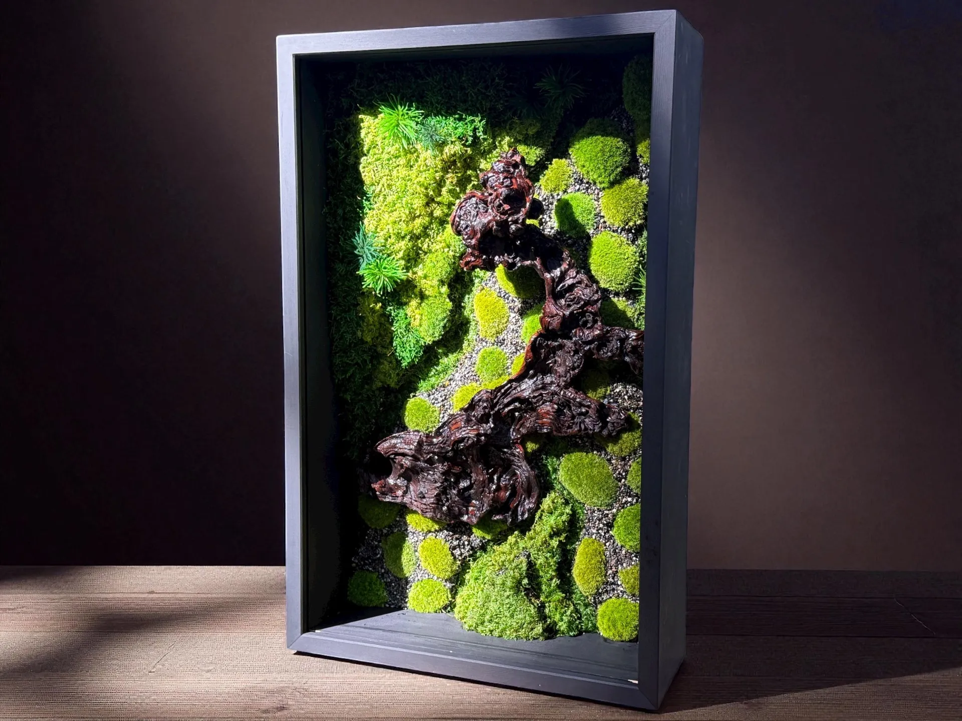 特殊保存加工を施した苔「和翠」を使用して制作した作品「時空苔」この作品は公式にMoss Artist KAZUとして展示会に出展するにあたって制作した苔アートフレームになります。